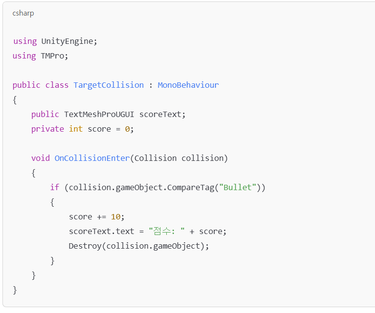 ✅ 점수 텍스트는 TargetCollision에 Drag & Drop으로 연결