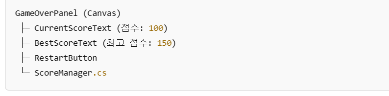 - 적절한 위치에 배치 (게임 오버 패널에도 복사해두면 좋아요)