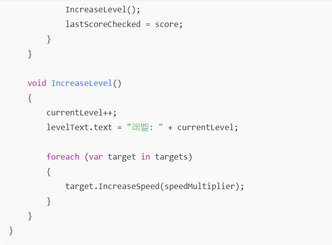 | 레벨이 올라갈수록 타겟 속도 증가 | 타겟 이동 스크립트 연동 |