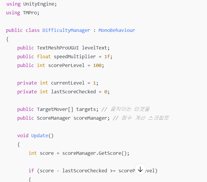 | 레벨이 올라갈수록 타겟 속도 증가 | 타겟 이동 스크립트 연동 |