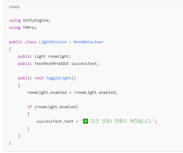 | 미션 1: 전등 켜기 | 버튼 인터랙션 | 조건문 (if), 이벤트 |
